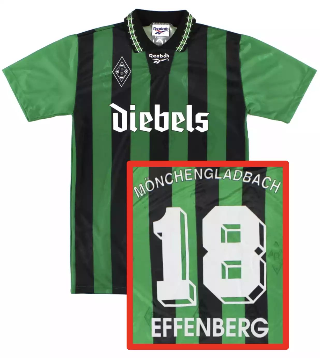 Maillot rétro BORUSSIA MONCHENGLADBACH away 1995 EFFENBERG – 100% polyester